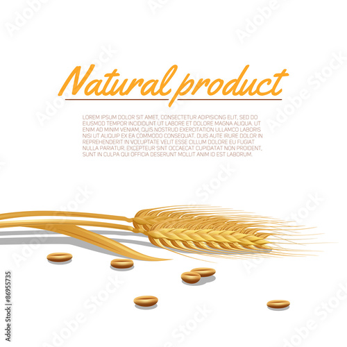 Колоски пшеничных колосьев под векторным изображением брызг молока. Реалистичный элемент дизайна упаковки органических вегетарианских продуктов, выделенный на белом фоне