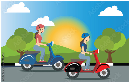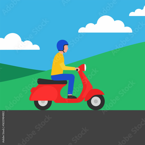 Векторная иллюстрация пожилой женщины, сидящей в инвалидной коляске или едущей на электрической инвалидной коляске в парке. Дизайн в плоском стиле.
