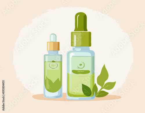 Макет белого пустого косметического флакона, вырезанные из бумаги зеленые листья мяты, брызги, векторная иллюстрация. Шаблон рекламы мятного шампуня. Средство для красоты и ухода за волосами.