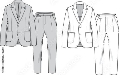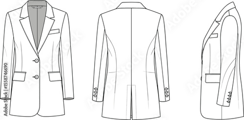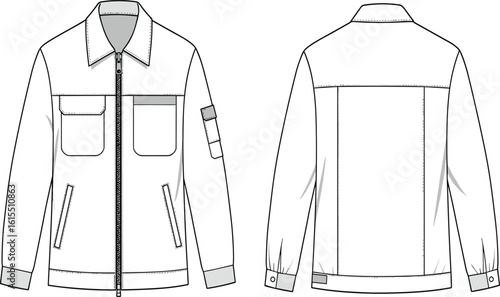 Набор макетов белой мужской рубашки с 4 сторонами. Векторная реалистичная иллюстрация, изолированная на белом фоне.