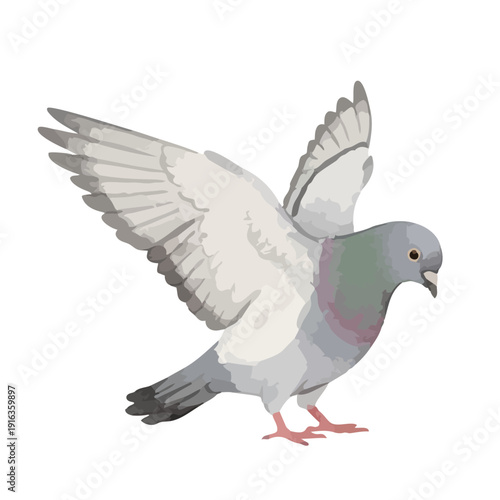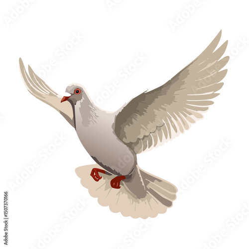 Белый голубь голубка птица векторная изолированная иллюстрация. Дух надежды и мира. Прекрасный символ любви, чистоты и романтики. Пернатое летающее животное для магического трюка