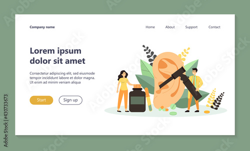 Векторный шаблон целевой страницы веб-сайта по производству вина и питья. Мужчина с бутылкой, разливающий алкогольный напиток для дегустации, персонажи, выращивающие виноград и создающие иллюстрацию виноградной лозы