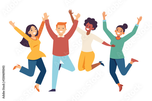 Вектор команды победителей. Счастливый сотрудник бизнеса получает золотой кубок за первый приз. Церемония награждения чемпиона. Концепция командной работы и успеха