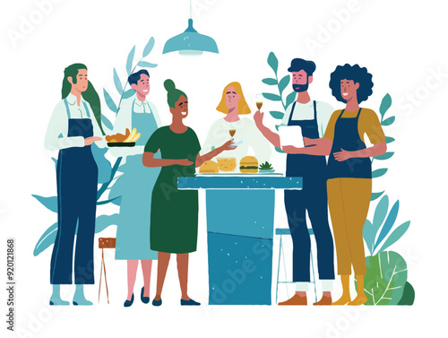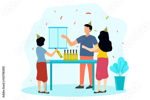Огромный кубок трофей и успешные крошечные бизнесмены празднуют победу, векторная иллюстрация. Победители, концепция достижений команды для веб-баннера, страницы веб-сайта и т.д.