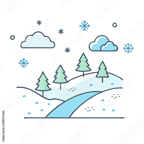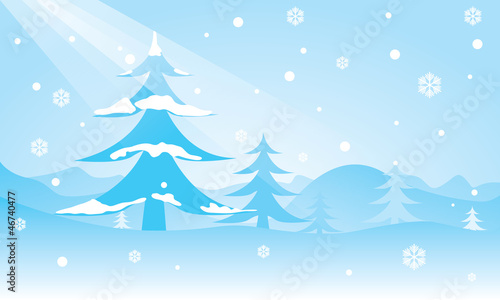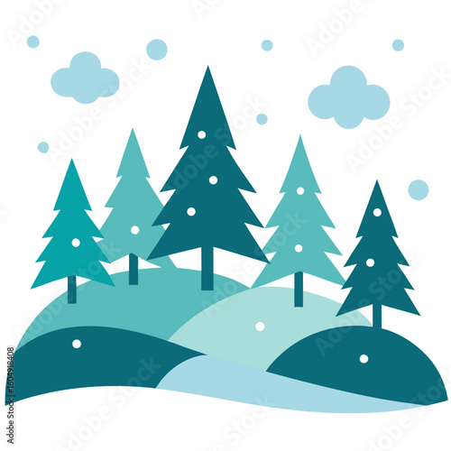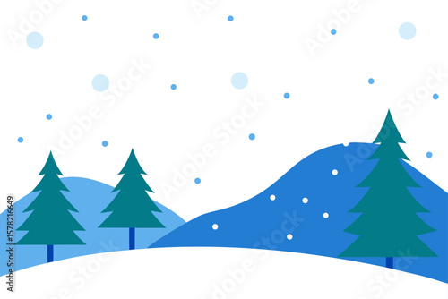 Зимний векторный фон в стиле бумажного ремесла. Рождество и счастливый новый год с заснеженной елкой, сосновой пихтой и снежинкой на иллюстрации горных холмов