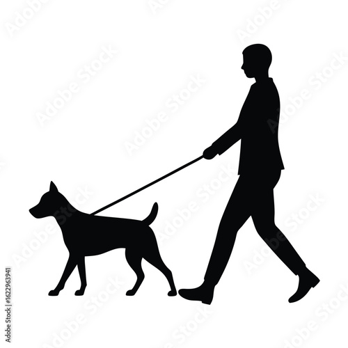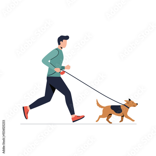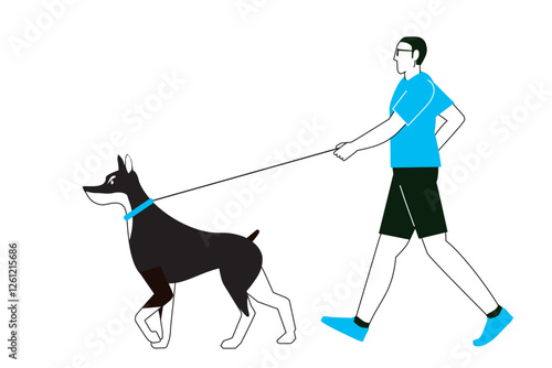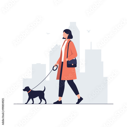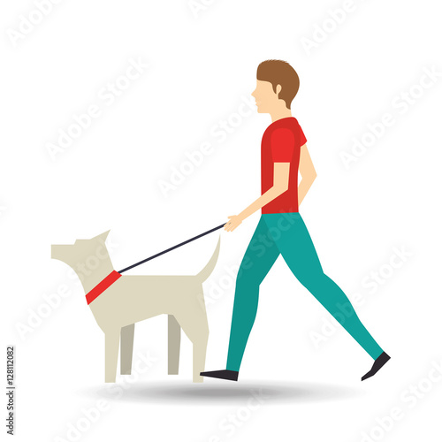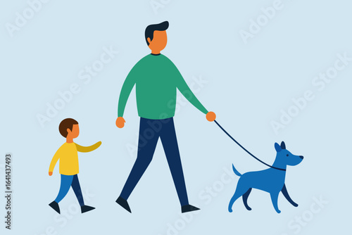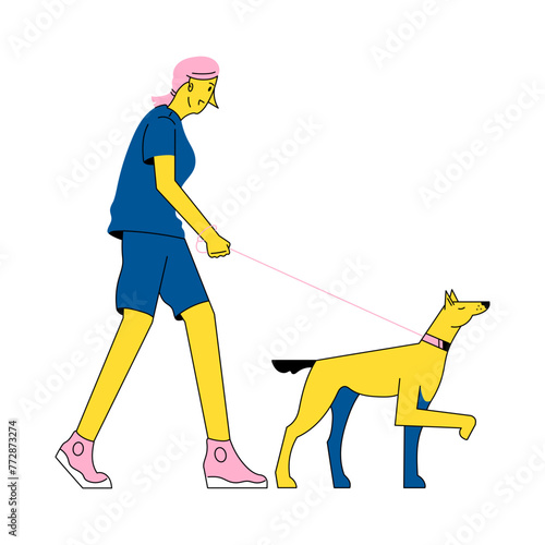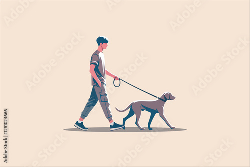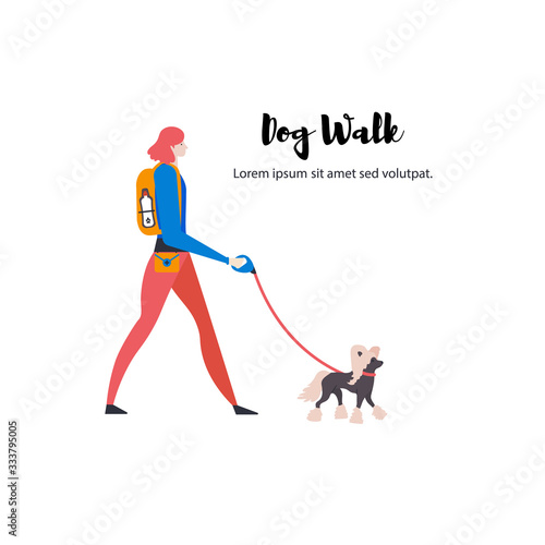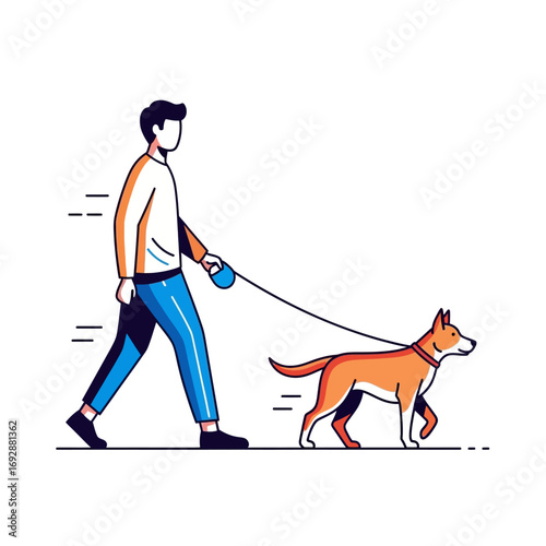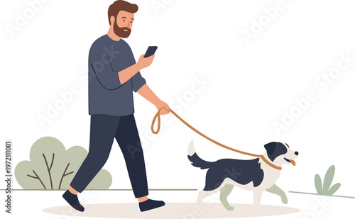 Человек выгуливает собаку в парке и отправляет текстовые сообщения с помощью смартфона и Wi-Fi или мобильного Интернета, векторная плоская изолированная иллюстрация. Концепция технологии беспроводной сети для страницы веб-сайта и т.д.
