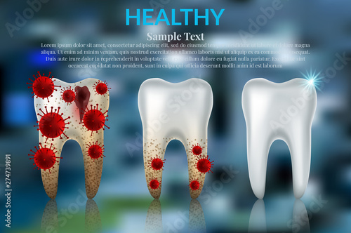 Шаблон плаката с зубами мудрости, векторная реалистичная иллюстрация. Пораженный зуб мудрости, который вызывает проблемы с зубами, такие как кариес или разрушение другого зуба. Концепция здоровья зубов.