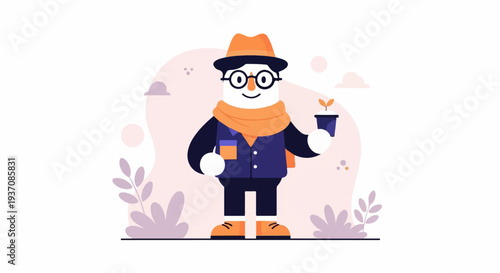 Милая ведьма с векторной мультяшной иконкой летучей мыши. Изолированная девушка-волшебница в шляпе, держащая в руках летучую лису на белом фоне