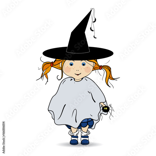 Ведьма с книгой заклинаний в векторе. Милая девушка-волшебница на Хэллоуин, изолированная иллюстрация значка. Злая фея в волшебной шляпе, изолированная на белом фоне