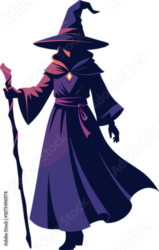 Волшебник, держащий сову на руке, векторный значок, изолированный на белом фоне.