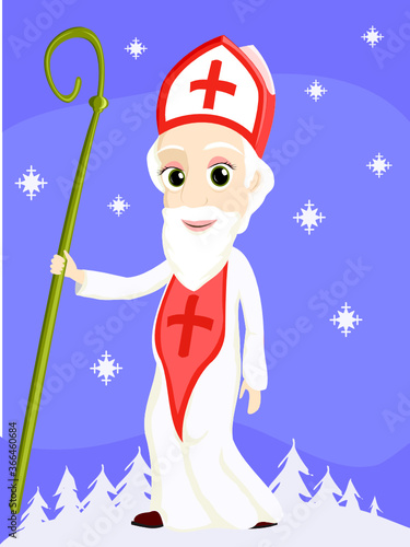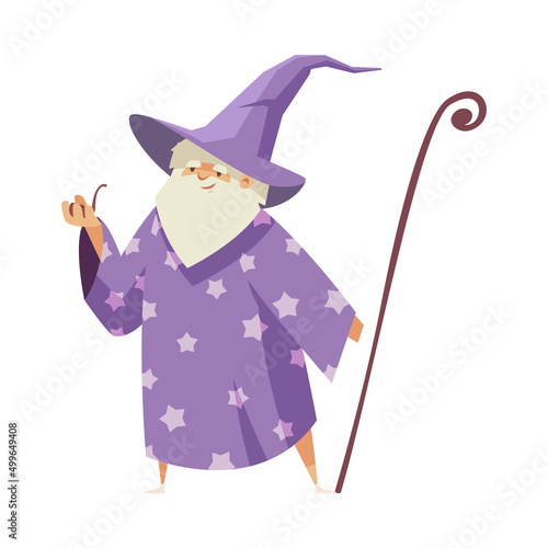 Волшебник с волшебным шаром и посохом в руке векторная иконка, изолированная на белом фоне.