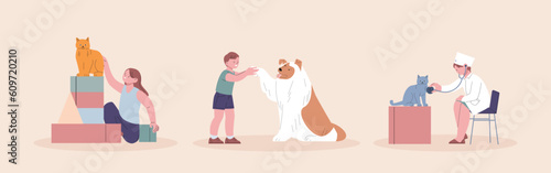 Женщина, усыновляющая кошку из приюта для домашних животных, векторная иконка на изолированном фоне.