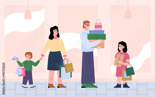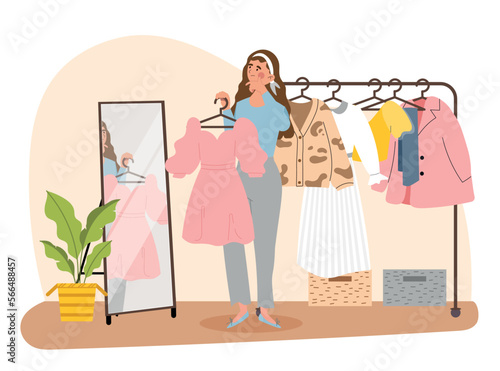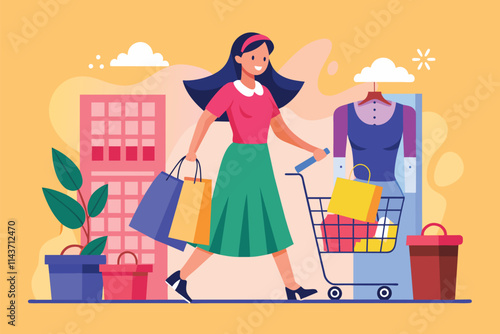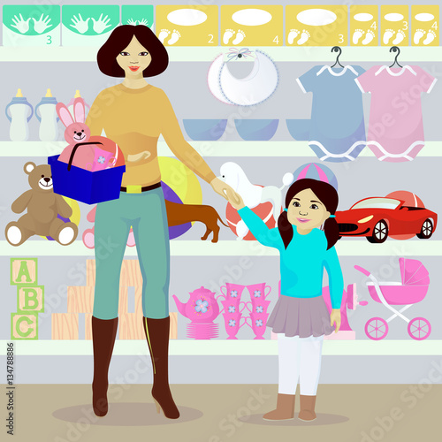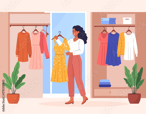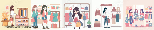 Магазин косметики Beauty, иллюстрация магазина косметики для макияжа. Векторная женщина, выбирающая средство по уходу за кожей. Девушка-мультяшный персонаж в отделе парфюмерии. Разнообразие ассортимента на полке