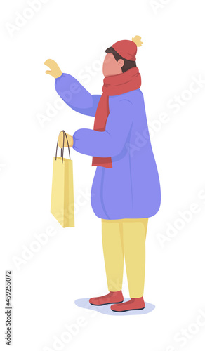 Женщина, покупающая обувь, векторный значок, изолированный на белом фоне