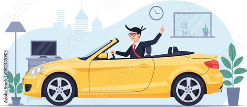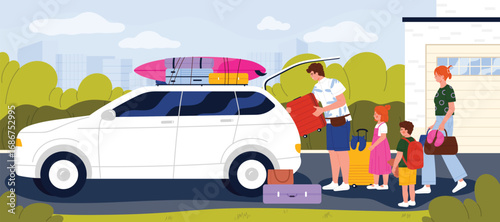 Расстроенная женщина-водитель автомобиля сбивает мальчика-подростка на электрическом самокате на городской дороге векторная иллюстрация. Опасная ситуация, транспортное происшествие и раненые люди