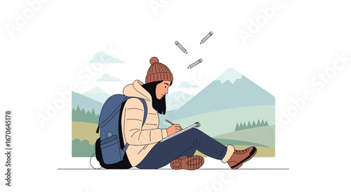 Женский персонаж читает книгу и гладит кошку, сидя на полу, векторная иконка изолирована на белом фоне.