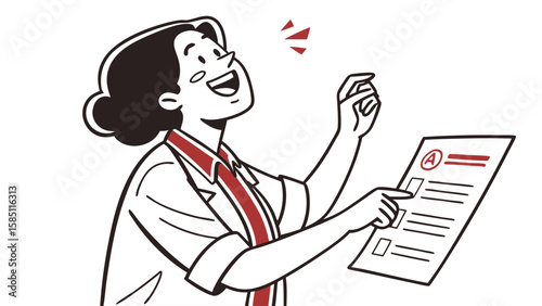 Женщина-шеф-повар указывает двумя руками в сторону, рекламируя что-то векторным значком, выделенным на белом фоне