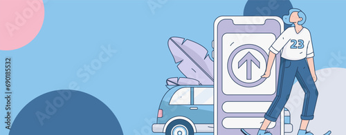Женщина управляет роботизированной рукой с помощью цифрового планшета. Векторная иллюстрация концепции разнообразия и преодоления научного уклона. Женщины в сфере технологий. Инновационные технологии в науке. Женщина-разработчик.