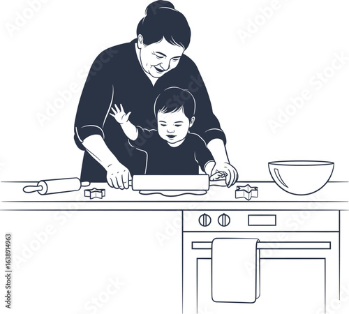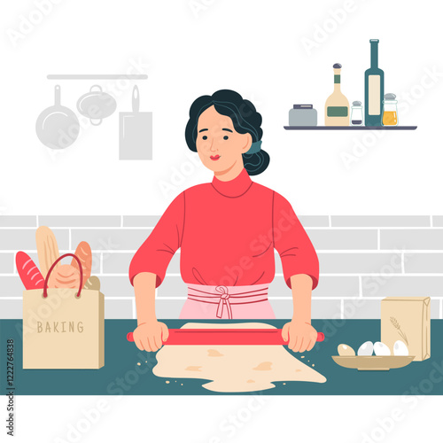 Молодая женщина готовит еду на кухне. Векторная иллюстрация в плоском стиле. Элемент дизайна концепции кулинарного хобби.
