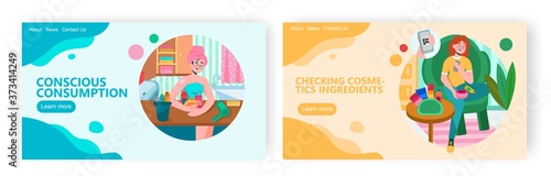 Женщина готовит еду с яйцами и грибами. Девушка отказывается от фасованной пищи и предпочитает есть орехи. Иллюстрация концепции здорового питания. Векторный шаблон дизайна веб-сайта.