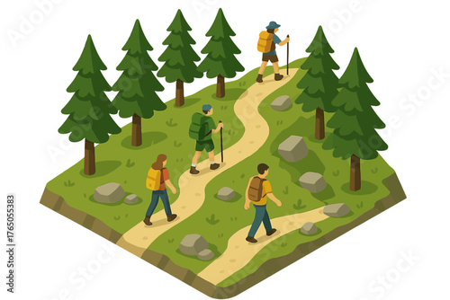 Женщина, готовящая еду на костре в лесу - векторное изображение.