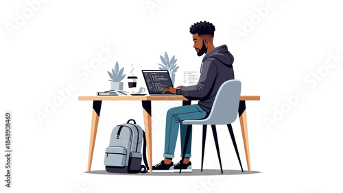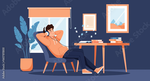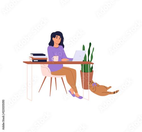 Женщина в наушниках, говорящая в микрофон перед портативным компьютером, плоская векторная иллюстрация. Ди-джей создает подкаст, ведет прямое радиошоу в студии. Подкастинг, онлайн-радио.