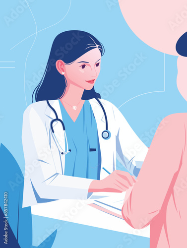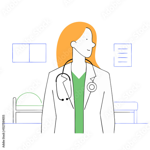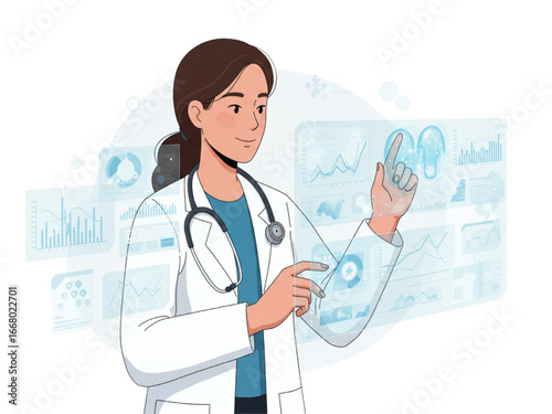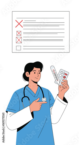 Женщина-врач с поднятой рукой над головой празднует и радуется векторной иконке, изолированной на белом фоне