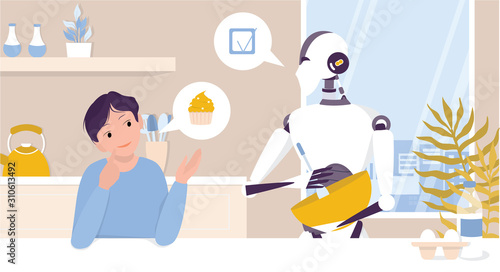 Женщина, эколог, покупающая кофе в своей собственной многоразовой чашке в экологически чистой кофейне, плоская векторная иллюстрация. Экологически чистое кафе, ноль отходов, сохранение окружающей среды, концепция экологии.