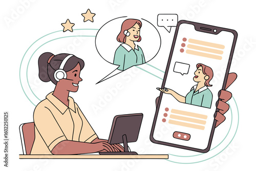 Женщина получает массаж лица, плоская векторная иллюстрация. Массажист-женщина с мультяшными персонажами наносит масло или крем на кожу лица. Косметические спа-процедуры, уход за лицом.
