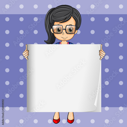 Женщина держит пустой плакат из белой бумаги. Векторная иллюстрация в стиле ретро в стиле поп-арт. Поместите свой собственный текстовый шаблон.