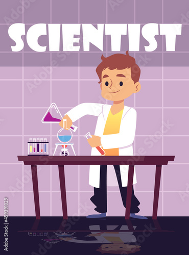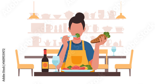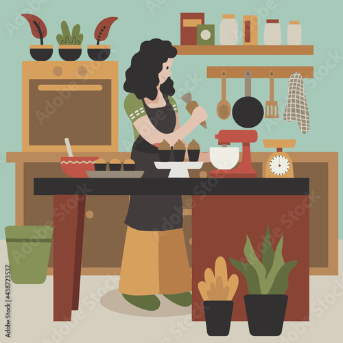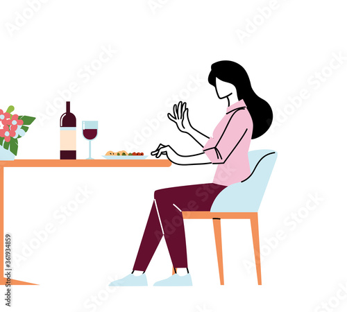 Женщина в защитной медицинской маске для лица, перчатках дезинфицирует поверхность стола антибактериальным дезинфицирующим спреем в гостиной, плоская векторная иллюстрация. Уборка дома, дезинфекция, профилактика вирусов.