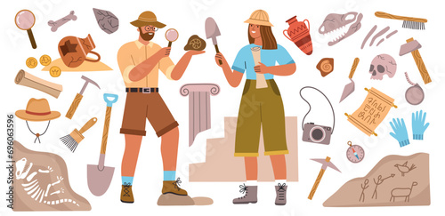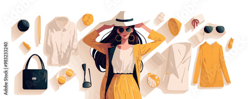 Женщина в салоне красоты, профессиональный парикмахер, набор векторных плакатов. Стрижка и укладка девушки. Парикмахер расчесывает и подстригает волосы клиента. Аксессуары для парикмахерской, фен, ножницы.