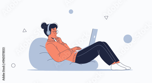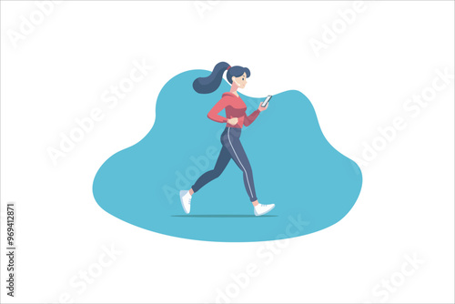Женщина в наушниках, слушающая аудиопрограммы на смартфоне, плоская векторная иллюстрация. Девушка слушает музыку, радио в прямом эфире, подкаст, аудиокнигу. Подкастинг, онлайн-радио, потоковое вещание. Широковещательные средства массовой информации.
