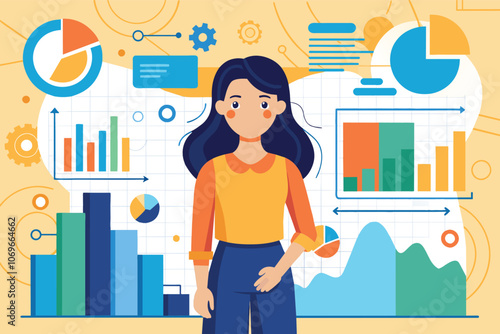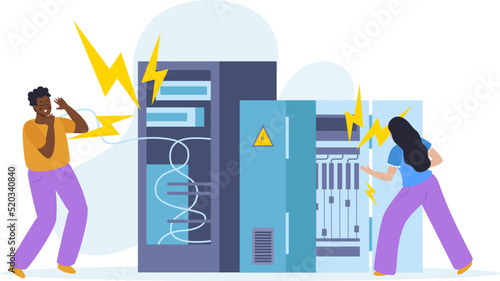 Женщина в очках виртуальной реальности, работающая с экранами виртуальной реальности. Черно-белые женщины-инженеры. Векторная иллюстрация концепции разнообразия и преодоления научного уклона. Женщины в сфере технологий. Инновационные технологии.