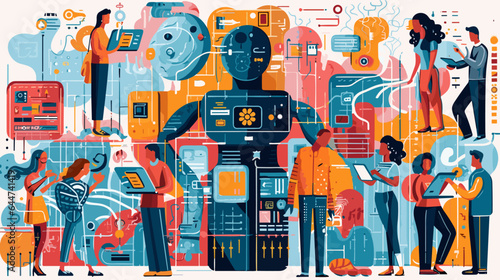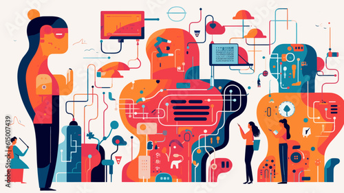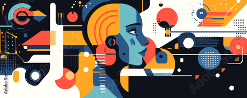 Женщина в очках виртуальной реальности, работающая с экранами виртуальной реальности. Векторная иллюстрация концепции разнообразия и преодоления научного уклона. Женщины в сфере технологий. Инновационные технологии в науке. Женщина-разработчик.
