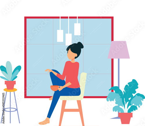 Женщина гладит одежду векторная иллюстрация. Домохозяйка пользуется бытовой техникой.