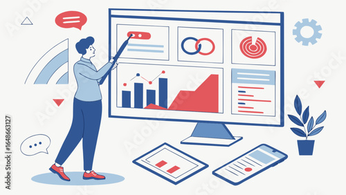 Женщина, отмечающая контрольный список, задачи как выполненные, плоская векторная изометрическая иллюстрация. Продуктивность, пунктуальность, концепция управления задачами.
