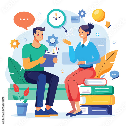 Молодая счастливая пациентка-женщина, получающая внутривенную инъекцию апельсинового витамина в векторной иллюстрации клиники. Женщина, сидящая в кресле, и врач, приносящий новую порцию добавки. Концепция медицины и красоты