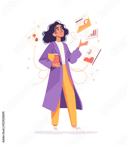 Женщина, выступающая стоя и говорящая в микрофон векторная иконка, изолированная на белом фоне