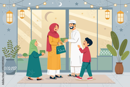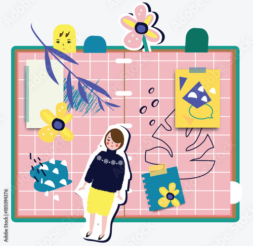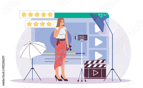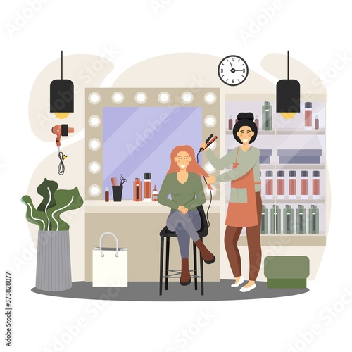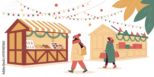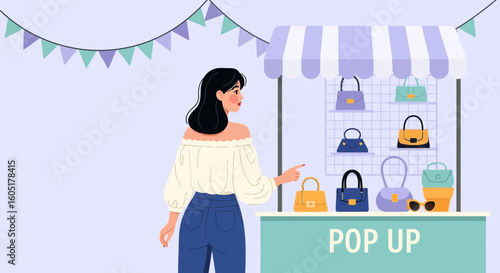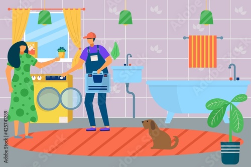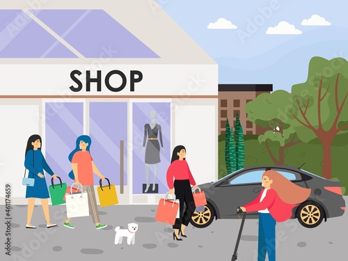Женщина-владелица домашнего животного со щенком посещает пекарню или кондитерскую. Векторная иллюстрация, благоприятная для собак.