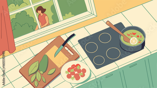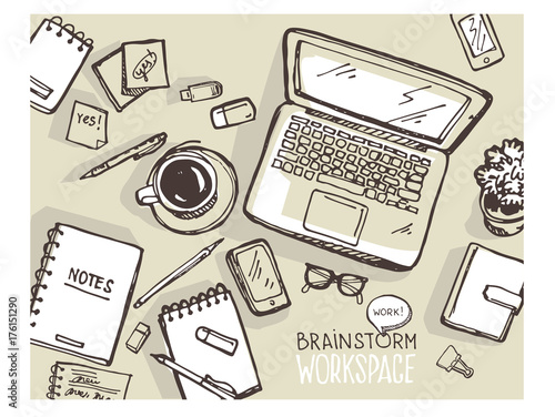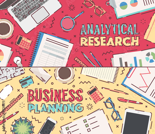 Женщина планирует поездку. Векторная иллюстрация концепции путешествия с видом сверху. Стол с картой, паспортом, фотоаппаратом и ноутбуком. Женская рука рисует маршрут поездки на карте мира. Праздничное приключение, отпуск, контрольный список путешествий.