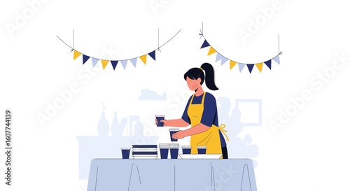 Женщина-политик, выступающая с речью на векторной трибуне. Изометрический значок спикера или кандидата в лидеры выборов, выделенный на белом фоне