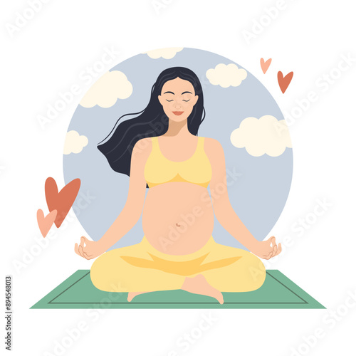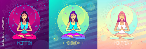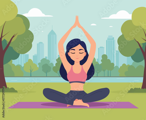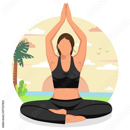Женщина практикует йогу в открытом природном ландшафте. Мужская тренировка в боксерском зале. Векторная иллюстрация концепции. Медитация на фоне гор. Шаблон дизайна веб-сайта.
