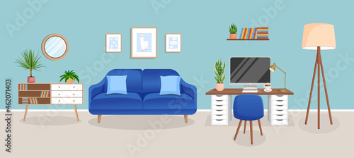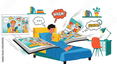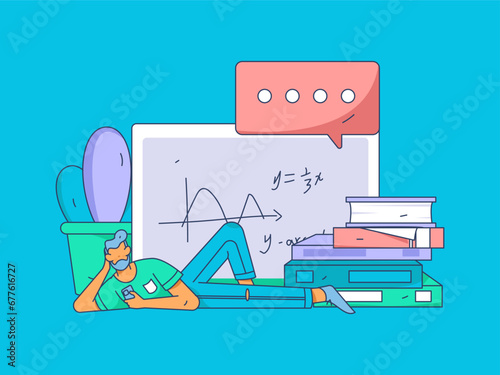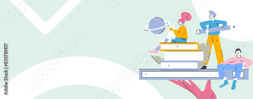 Женщина подготовит удобное место для чтения книги. Иллюстрация концепции зоны чтения дома. Векторный шаблон дизайна веб-сайта. Стопка книг и стаканов на столе.