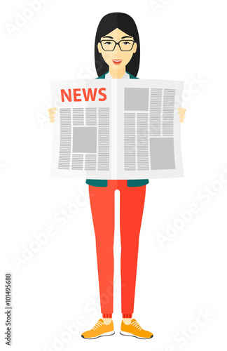 Женщина-ведущая телепрограммы, говорящая в микрофон, векторная иконка, изолированная на белом фоне.