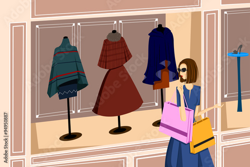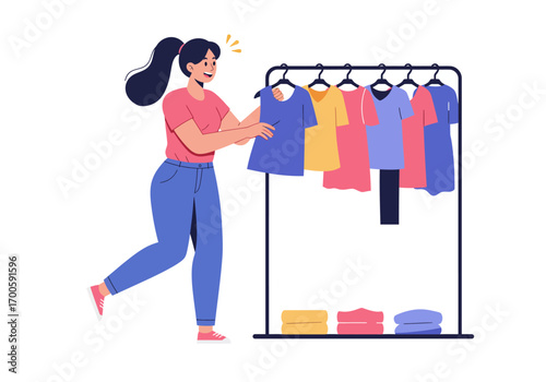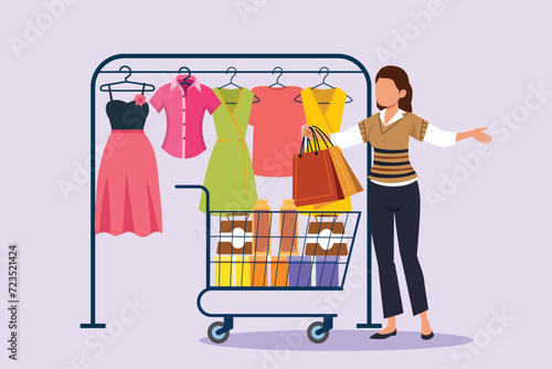 Женщина-швея шьет красное платье. Векторная иллюстрация в плоском стиле. Концепция хобби по рукоделию.