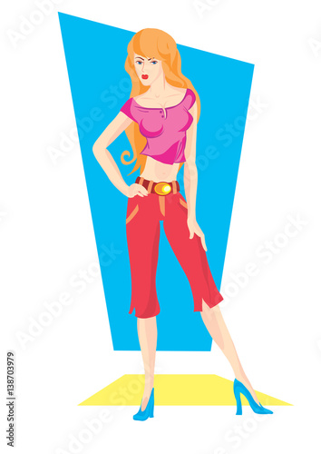 Женщина-покупатель, идущая с векторным значком купона, изолированным на белом фоне