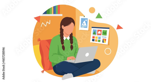 Женщина делает покупки в Интернете со своего стула дома. Иллюстрация концепции. Векторный шаблон дизайна веб-сайта.