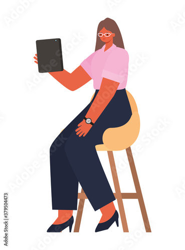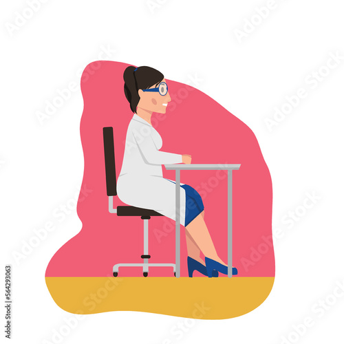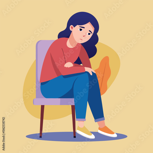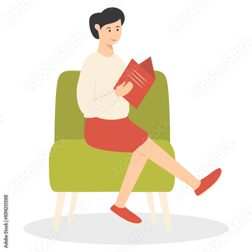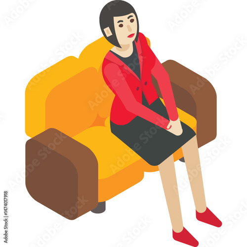 Женщина, сидящая на диване, векторная иконка дивана, изолированная на белом фоне. Офисный работник, сотрудница, исполнительный менеджер, бизнесвумен-фрилансер