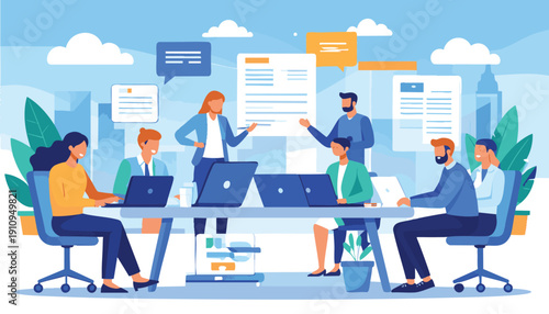 Женщина сидит и разговаривает с менеджером в кредитном отделе банка, векторная иконка выделена на белом фоне